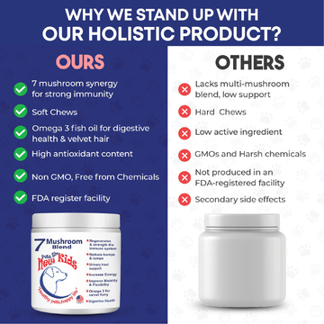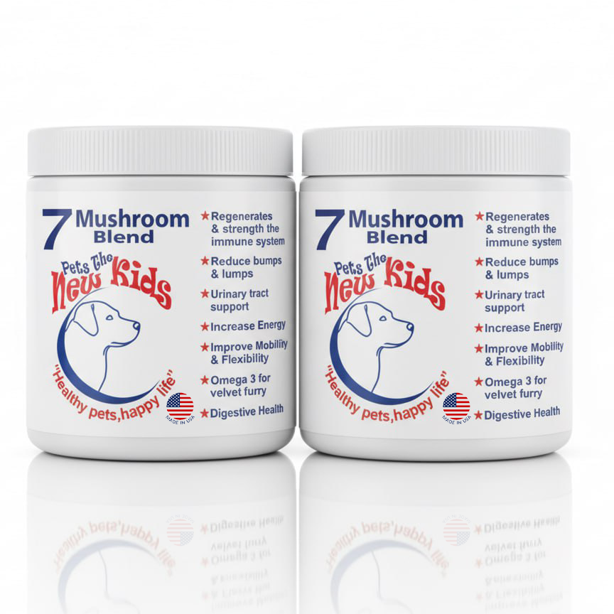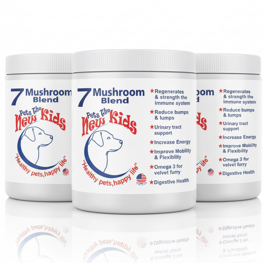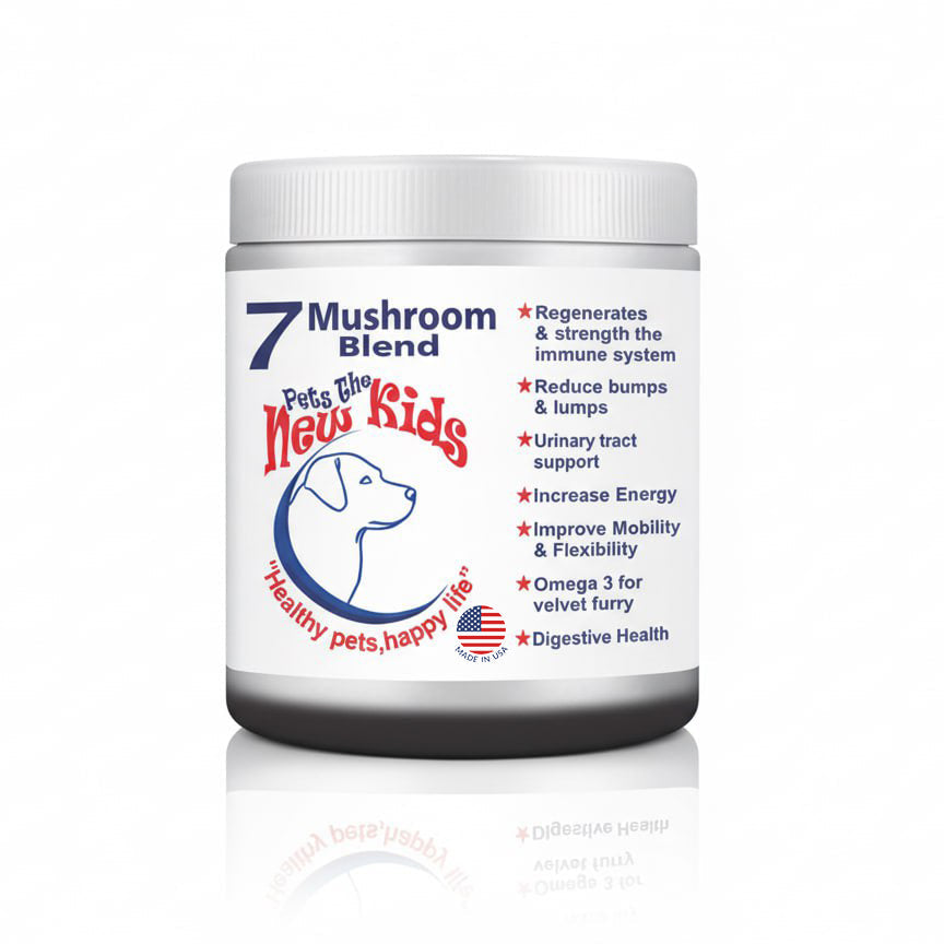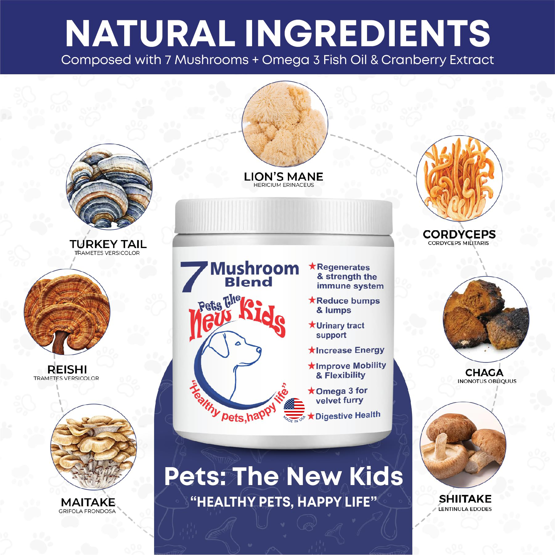 Give your pets the natural boost they deserve with our powerful 7 Mushroom Blend. Infused with Lion’s Mane, Cordyceps, Turkey Tail, Reishi, Maitake, Shiitake, and Chaga, combined with Omega 3 fish oil and cranberry extract, this supplement promotes overall health, energy, and vitality for your furry companions.